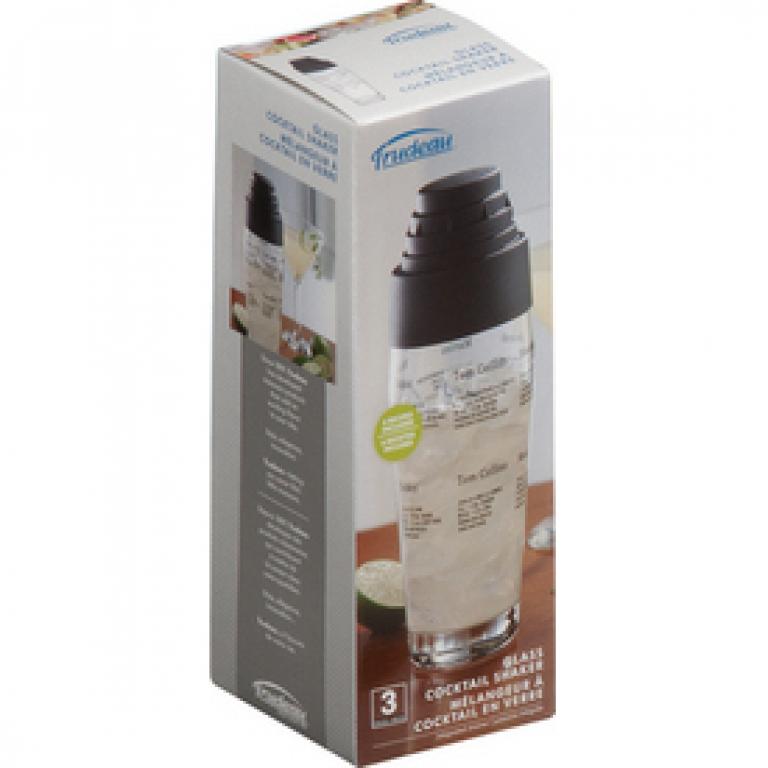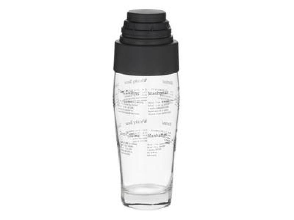 Un shaker elegant si eficient, confectionat din sticla si cu capac din plastic. Acesta are inscriptionate pe suprafata sa exterioara 6 dintre retele celor mai faimoase cocktail-uri din lume. Pentru a va putea prepara cu usurinta bauturile preferate! Sita incorporata. Capacitate: 600 ml (20 oz).