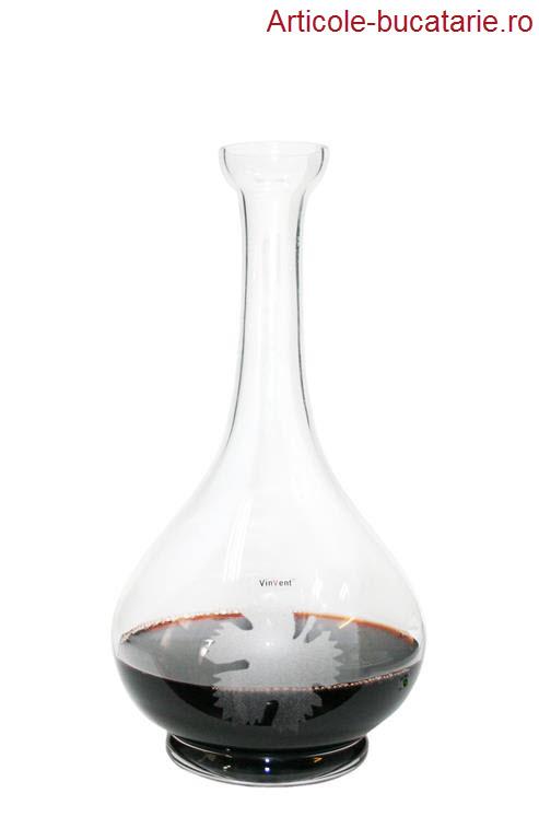 Decantorul cu o capacitate de 1,5 L este util oricarei gospodarii, caci ce petrecere are loc fara vinul preferat? Simplu si rafinat, recipientul este decorat pe exterior cu 2 frunze de vita de vie sablate.