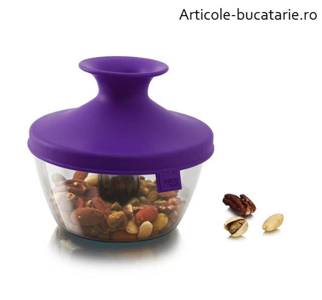 Pentru a pastra textura si aroma alimentelor intacte va recomandam cutia pentru depozitare de la Vacu Vin. Datorita capacului viu colorat si sistemului sau patentat Oxiloc, cutia este special conceputa pentru a asigura inchiderea ermetica a bolului. Cu un sistem de utilizare facil, cutia de foloseste printr-o simpla tragere in sus a capacului, lasand un orificiu pentru eliberarea alimentelor. Astfel, este ideala pentru petreceri ori locuri aglomerate, intrucat pastreaza perfect normele de igiena. Se poate curata la masina de spalat in conditii de siguranta.
