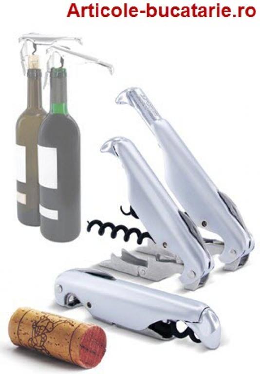 Tirbusonul confectionat din inox este prevazut cu un design ergonomic si manere extensibile ce ii reduc dimensiunile, fiind astfel foarte usor de utilizat. Permite extragerea unui dop in cateva clipe, fara efort si fara a-l deteriora.