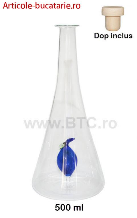 Produs 100% hand made din sticla borosilicata, acesta este decorat in interior cu o pruna in miniatura. Capacitatea este de 500 ml.>